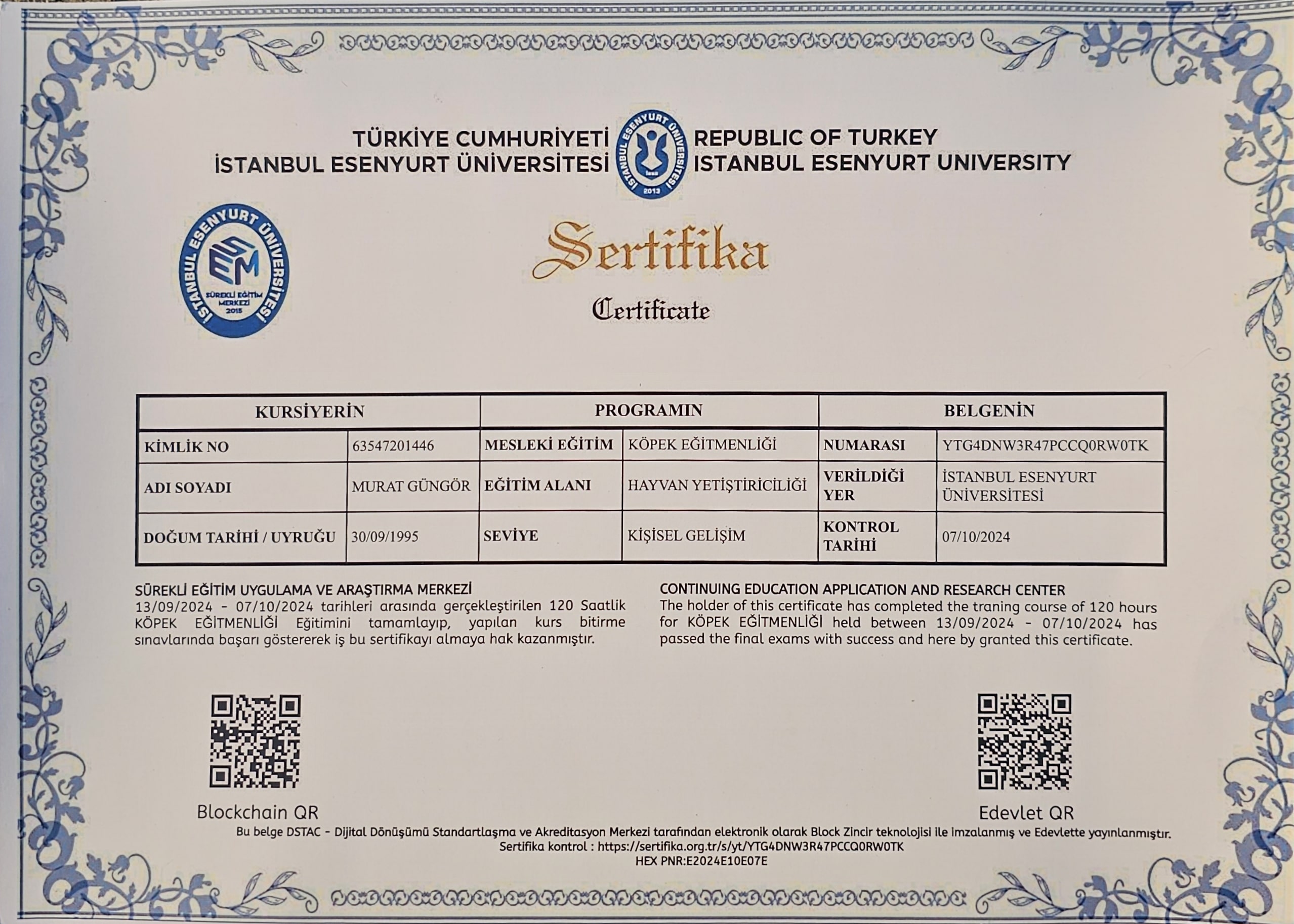 Murat Güngör, İstanbul’da profesyonel olarak hizmet veren köpek eğitmeni ve davranış uzmanıdır. Yavru eğitimi, temel ve ileri itaat eğitimi ile davranış problemlerine yönelik bireysel çalışmalar yaparak köpek ve sahipleri arasında kalıcı uyum sağlamayı hedeflemektedir. Disiplinli yaklaşımı, gözlem gücü ve karakter bazlı eğitim sistemi sayesinde kısa sürede sektörde tanınan bir isim hâline gelmiştir.
